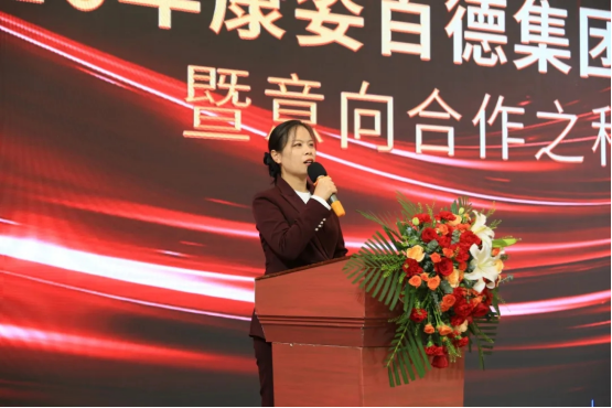 康姿百德集团销售公司总监董雪莹也在会议上发表了热情洋溢的讲话。总监董雪莹表示,康姿百德二十余年来始终将“诚信经营”作为立身之本,凭借优质的产品与真诚的服务,赢得了广大消费者的信赖。多年来,康姿百德立足品牌优势,从产品创新、服务支持、市场运营等多维度为合作伙伴赋能,让合作伙伴获得实实在在的发展助力。本次招商会,是与新老合作伙伴深化信任、共谋发展的新起点,希望更多合作伙伴选择康姿百德,共享品牌发展成果。